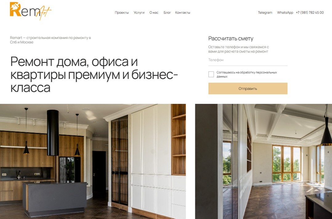Remart — одна из лучших компаний по ремонту квартир в Петербурге с опытом работы более 6 лет. Для клиентов есть возможность заказать дизайн-проект квартиры и ремонт под ключ.